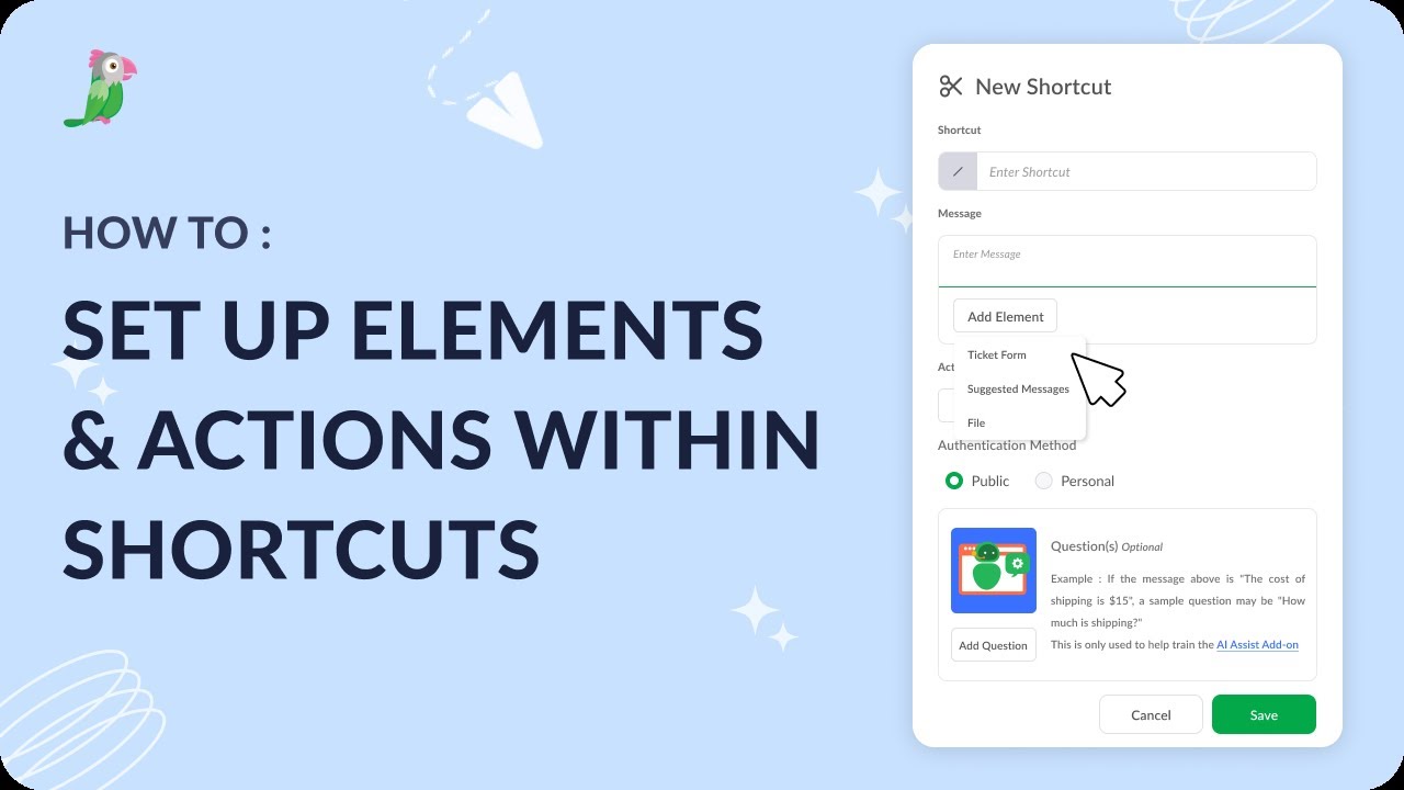 Setting up Elements and actions within shortcuts