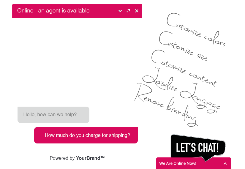 Our widgets and attention grabbing bubbles let you customize the chat widget to perfectly suit your brand. You can even upload your own custom bubbles.