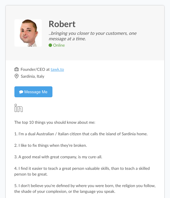 Zero code. Simply modify your Chat Page to suit your profile or brand and then share your link. It’s that simple.