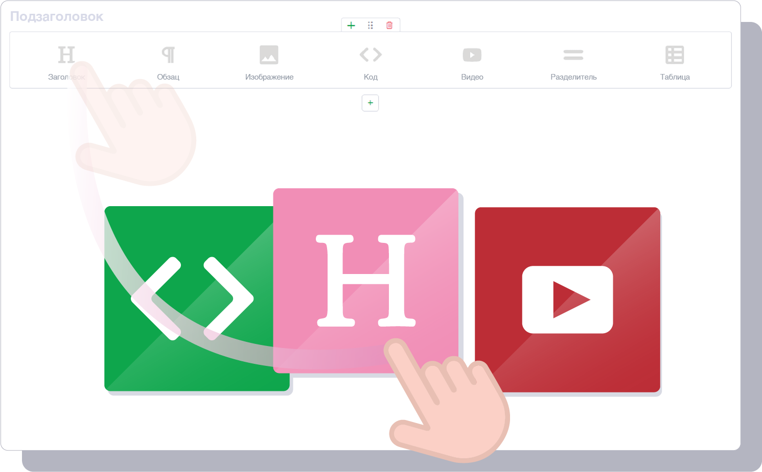 Создавайте контент с легкостью с помощью блочного редактора форматированного текста, который поддерживает изображения, GIF, фрагменты кода и видео. Это так просто!